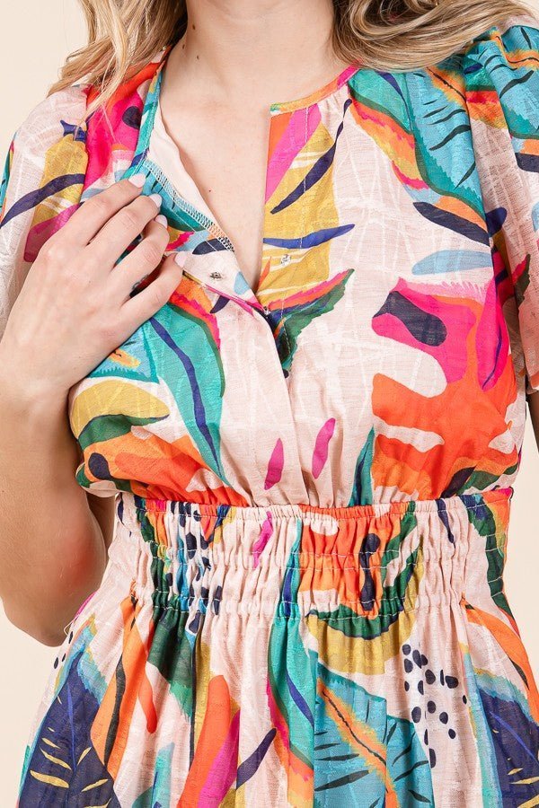 Be the first to review “Lime ‘N’ Chili Abstract Print Mini Dress in Fuchsia Combo”