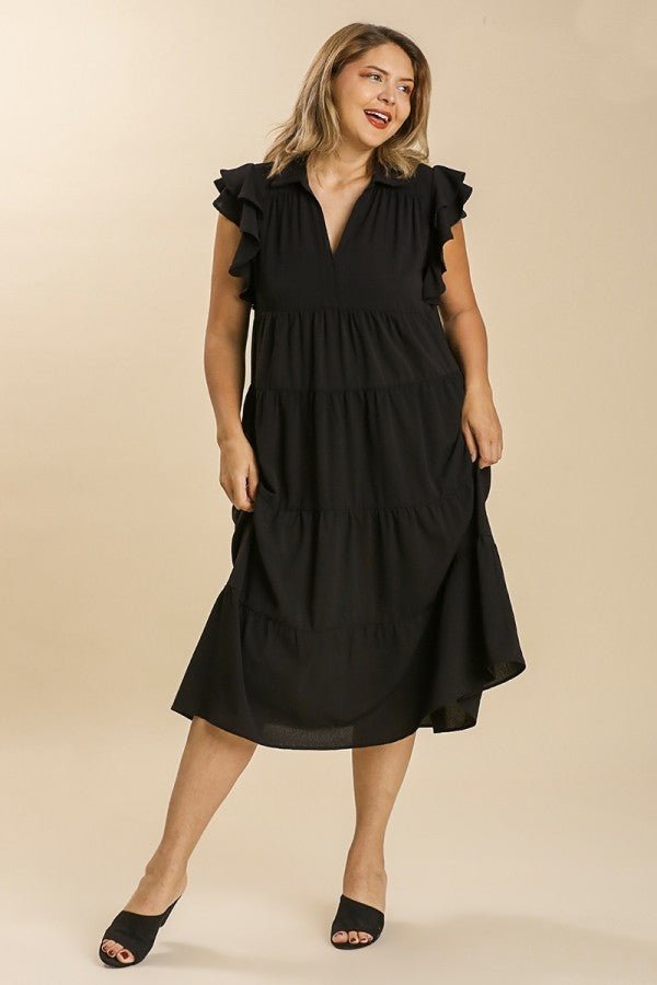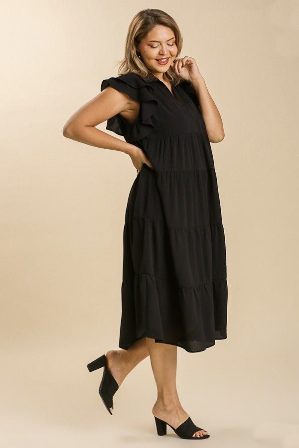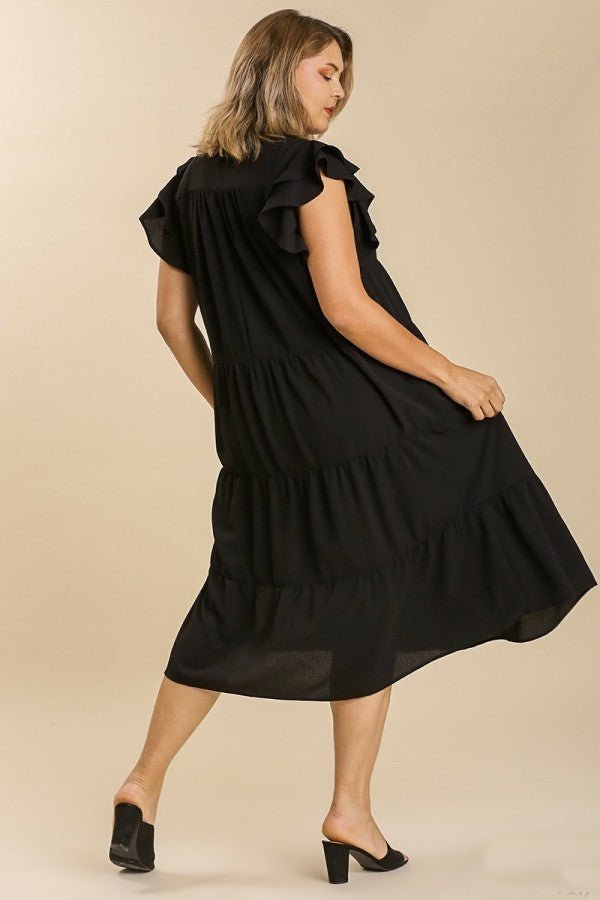 Umgee Tiered Midi Dress with Ruffled Sleeves in Black ON ORDER